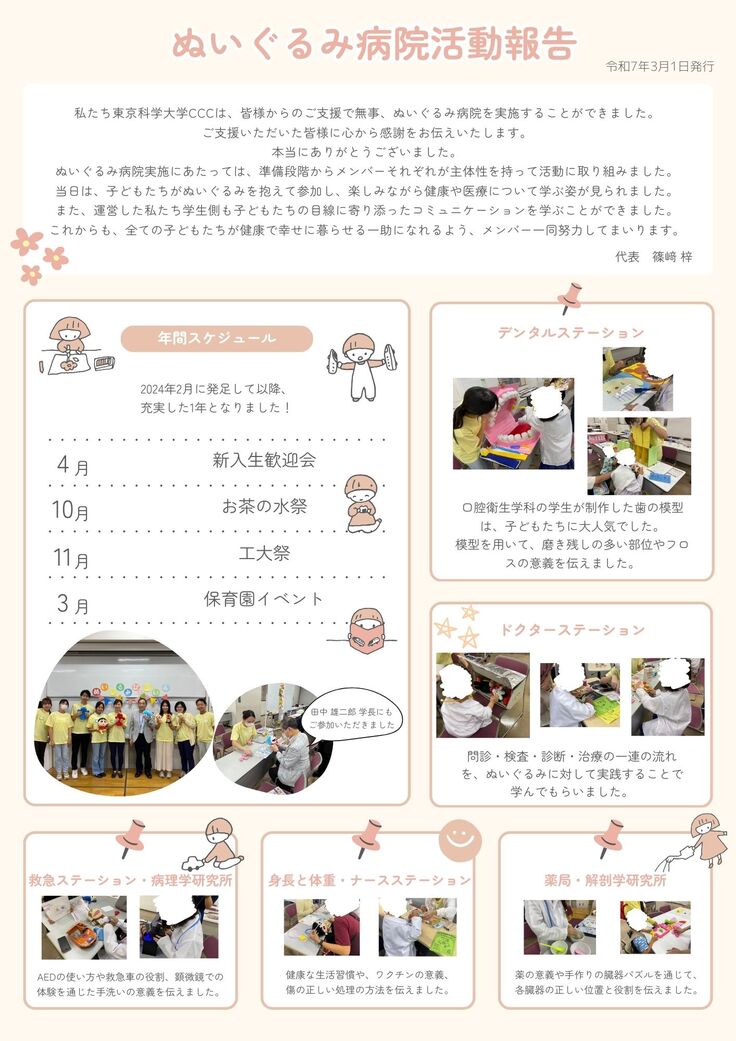 この度は、東京科学大学CCC(Child Care Club at Science Tokyo)の「ぬいぐるみ病院プロジェクト」にご支援を賜り、誠にありがとうございます。