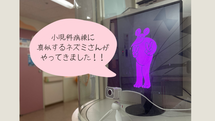 モニターの前でいくつかの動作をすると、ピンクのネズミさんがその動作を真似る仕組みになっています。