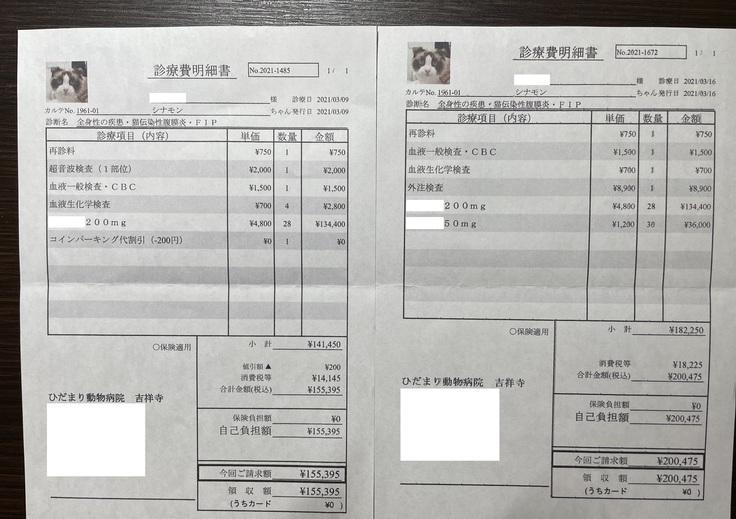 FIPという病気は、調べれば調べるほど本当に恐ろしい病気です。シナモン同様にFIPと戦っている猫ちゃんが他にもいらっしゃることが分かりました。また、未承認薬は非常に高額なため、未承認薬の投与をあきらめてしまう事例もございました。