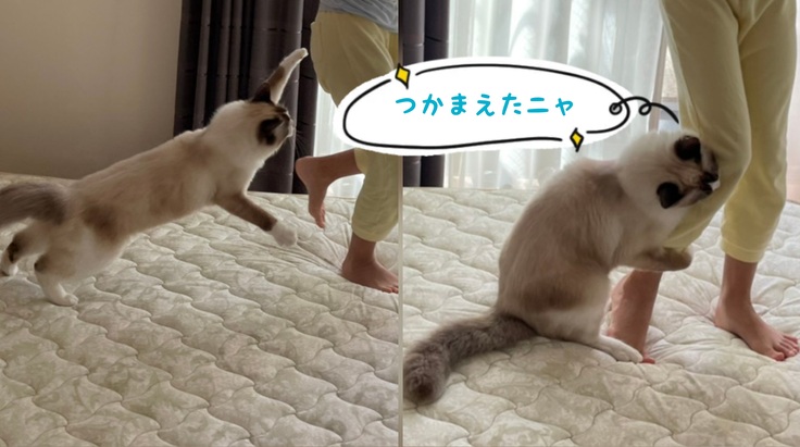 本日の写真は2日前に娘とシナモンがベッドの上で遊んでいる時の様子です。シナモンの遊び方が日々激しくなり、やんちゃ度が増してきています。元気な証拠です✨