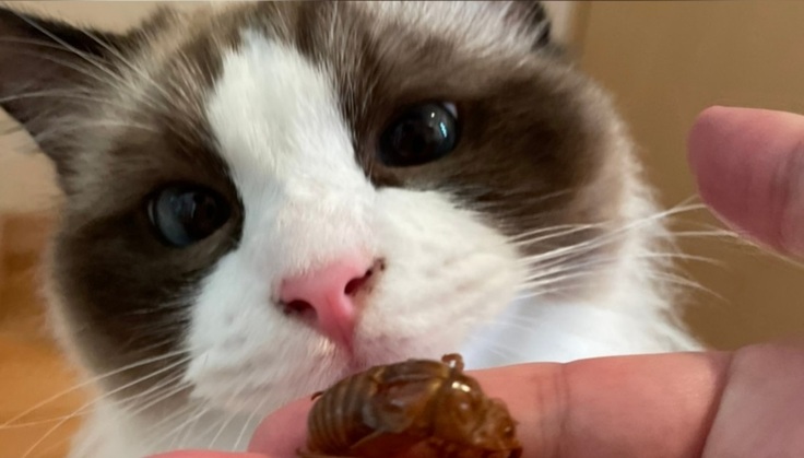 セミの抜け殻を初めて見て、興味津々なシナモンです🐱
