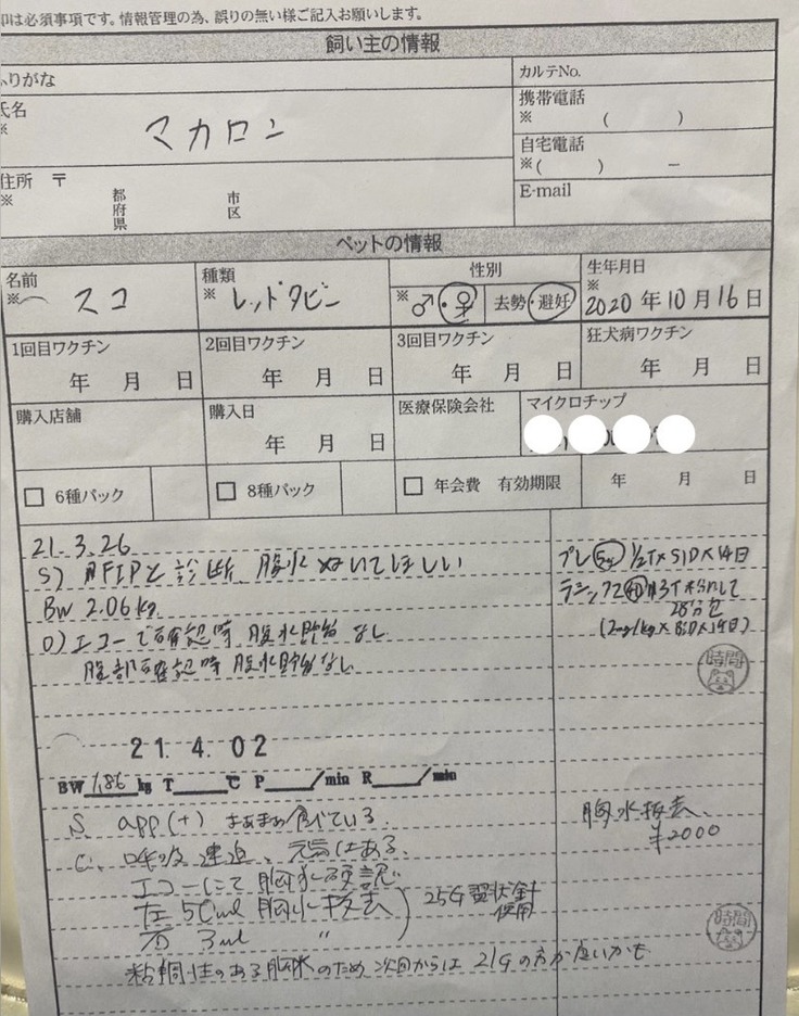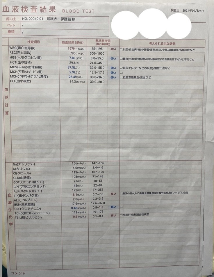 (通院先動物病院様のご迷惑にならないように病院名は伏せております)