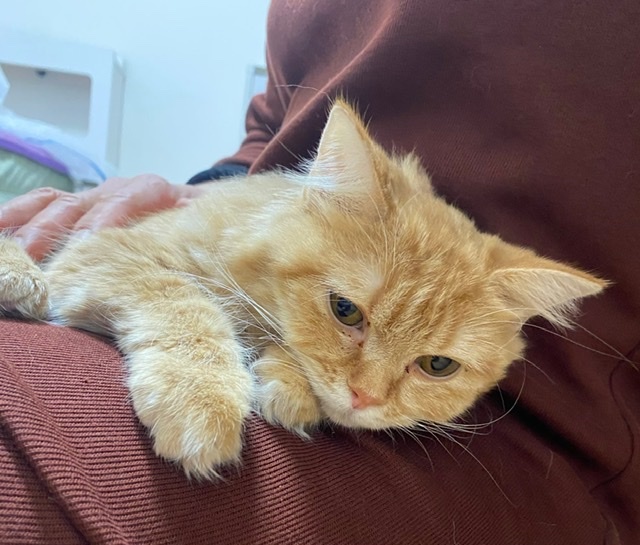 長毛種なので外見では分かりませんが、抱っこすると骨と皮でゴツゴツしていて、筋肉が無いせいか身体に力が入らずフニャフニャでした。