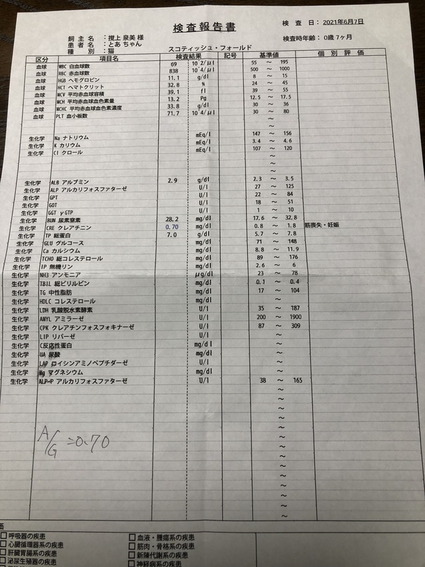 寛解するにはA/G=0.60を超える事が大事と言われていました。
