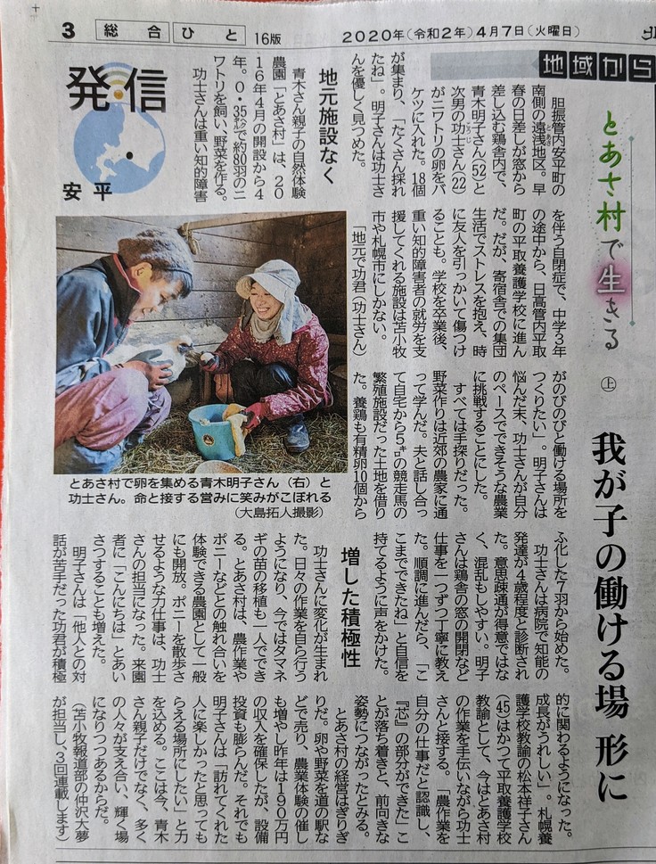 北海道新聞全道版でとあさ村が紹介\(^^)/(3回連載予定)