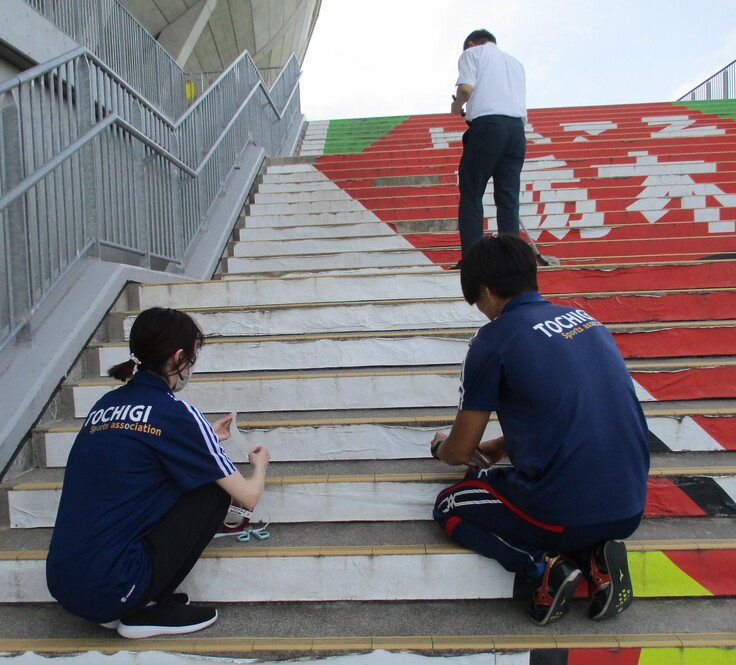 現在もウォーキングの利用者や、観戦に来場される観客の皆様等に親しまれていますが、風雨にさらされ、汚れやシールの剥がれが目立つようになってしまいました。今回、さらに設置場所を変え、耐性も強化するなど「とちまるくん階段」を生まれ変わらせるプロジェクトが実施されようとしています。