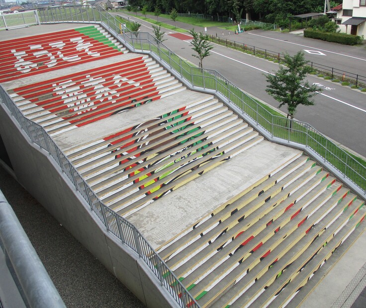 陸上競技での新記録樹立、自己記録更新、ライバルとの切磋琢磨する姿、サッカー競技では劇的な試合展開など、選手たちの活躍。そして、それを観戦し一喜一憂する観客の姿など、競技場の中では手に汗握る様々なドラマが展開されます。競技場の外でも「とちまるくん階段」が皆さまの思い出になれるよう願っています。