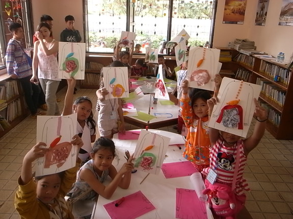 2014年11月23日ラオスの首都ビエンチャンにあるチャイルドカルチャーセンター(子ども文化センター)にてtocotocoのworkshop「ぼく、わたしのからだのしくみ〜たべもののとおるみち〜」を開催しました。