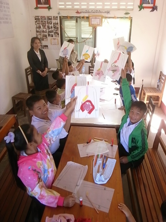 2014年11月24日、ヴィエンチャン郊外バンクンのトンカム小学校にて「ぼく、わたしのからだのしくみ」~たべもののとおるみち~を開催しました。