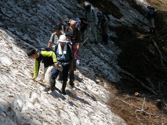 (大鳥の残雪を歩く)