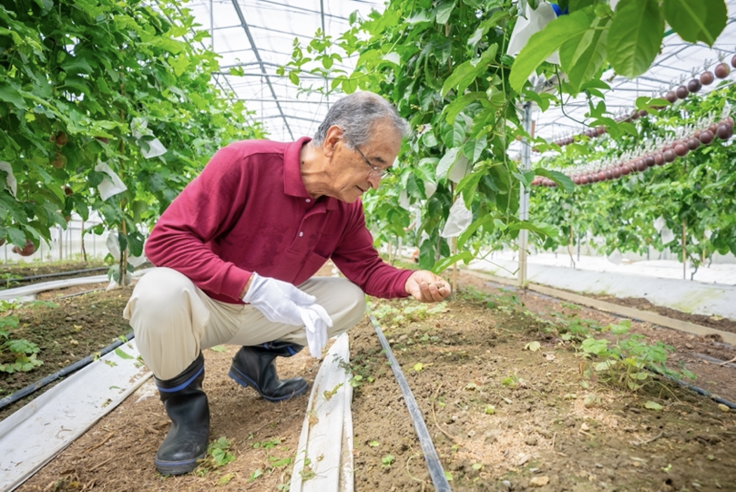 退職の数年前から、糸満市の農政課長であった叔父の元で、パッションフルーツ栽培の確かな技術を習得して独立。独自の栽培法を確立していきました。
