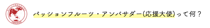 パッションフルーツ・アンバサダーとは、パッションフルーツの魅力を一緒に広めてくれる応援大使のことです。