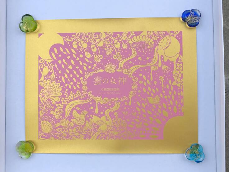 ②①に、ピンク色(「蜜の女神」、赤色「情熱の女神」)のインクを印刷