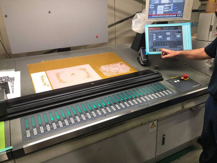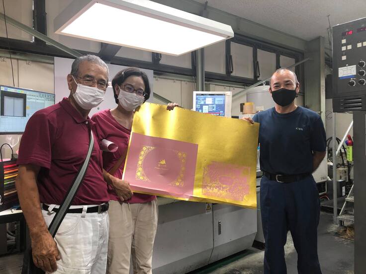 この①段階の印刷の立ち合いの為、株式会社近代美術様の工場にて印刷に立ち合い、色味の確認をしてきました。