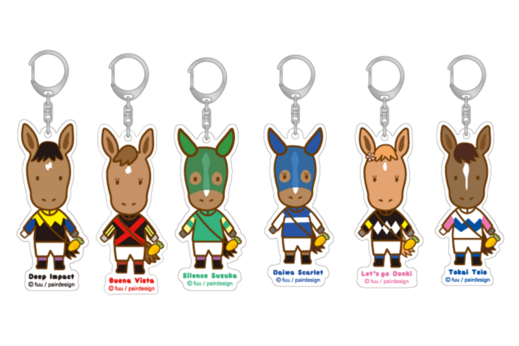 当社では2018年よりGI・7勝の名馬・キタサンブラック号を皮切りに、障害レースの絶対王者・オジュウチョウサン号、芦毛の名馬・ゴールドシップ号、前人未到のG I 9勝馬・アーモンドアイ号など人気の名馬と一流ジョッキーの肖像を使った競馬グッズをプロデュース・販売してきました。