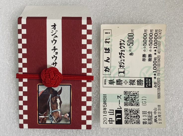 ステイゴールド号とその産駒代表のオルフェーヴル、ゴールドシップ、オジュウチョウサンと、お顔がキレイと人気のゴールドアクターとゴールドシチーの6頭をランナップした、馬券が収納出来るサイズのご祝儀袋です(水引付き)。また素顔の自然な表情をコンセプトにし、ゴールド(金)が馬名についた縁起が良くなるようなアイテムとして作成しました。