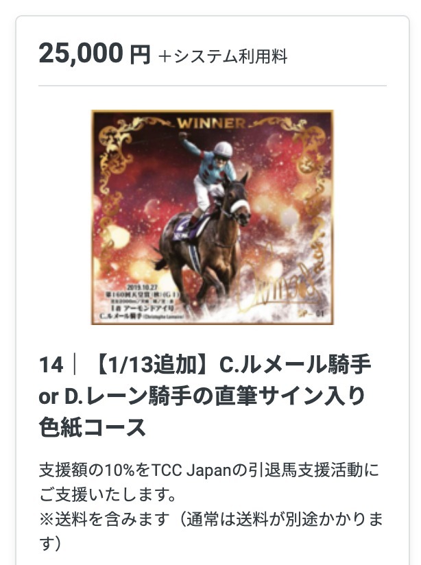 14|【1/13追加】C.ルメール騎手 or D.レーン騎手の直筆サイン入り色紙コース