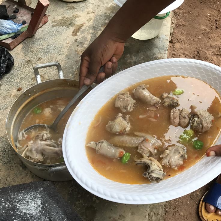 コンソメ味のスープには鶏肉とピリッと辛いピーマンの形をした香辛料、