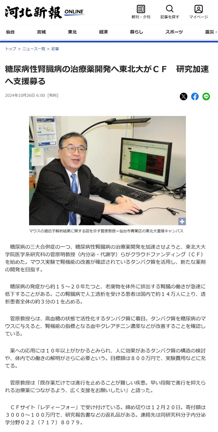 3千円|糖尿病性腎臓病の治療薬開発を応援