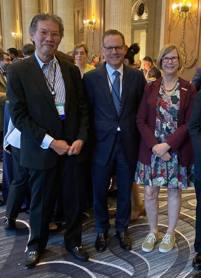 ASCO 2023(米国臨床腫瘍学会2023)に参加しました。先週6月2日~6日のシカゴで開催され2日目の段階で44,000人以上が参加していると報告がありました。私はASCO 2019以来の4年ぶりの参加。以前にも増して参加者が多く驚きました。米国の旧知のメンバーと数多く交流が出来、ウェブでの学術発表聴講だけだった過去3年からようやく脱して、久しぶりに有意義な参加となりました。(写真の中央はASCO CEOのCliford Hudis先生、右はASCO 2014会長のSandra Swain先生)。