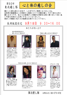9月18日は大船渡市で癒し会です。
