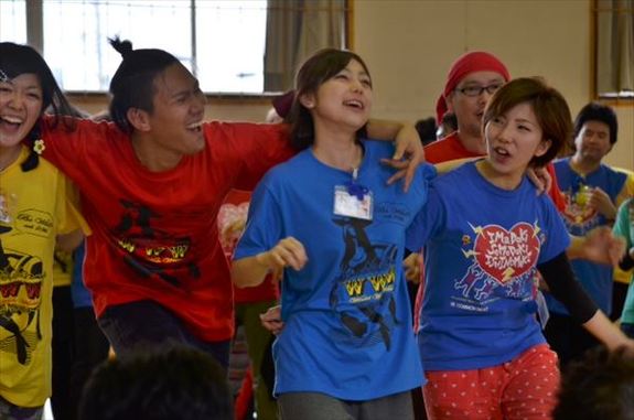 今週末の第2期東北ミュージカルプログラムは、私たちの2週間後にスタートした第28期東京100人100日プログラムを実施している東京キャストを石巻へ迎え入れ、総勢約200人での合同で練習を行いました!