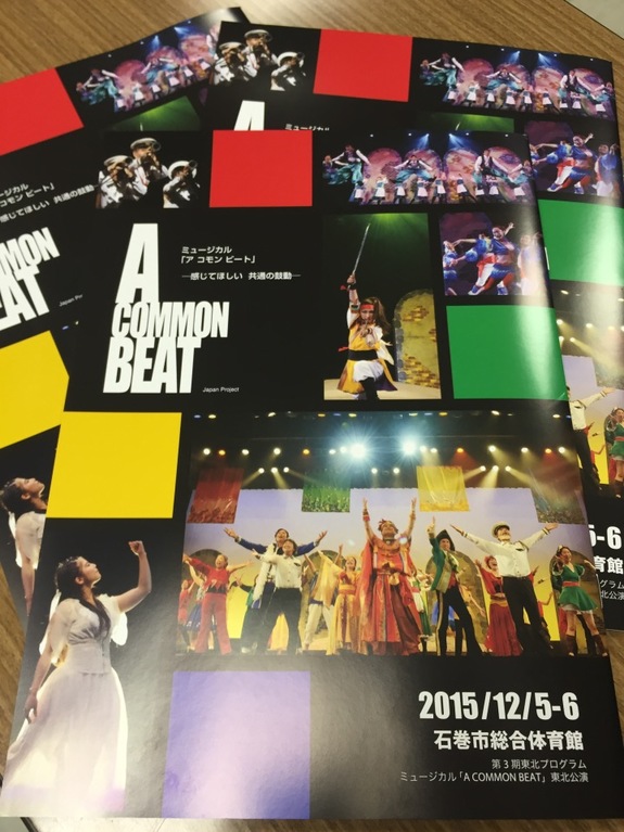 今は公演会場の石巻市総合体育館にて、お客様に配布する公演パンフレットの折り込み作業をしています。こちらが精魂込めて制作されたパンフレットです!