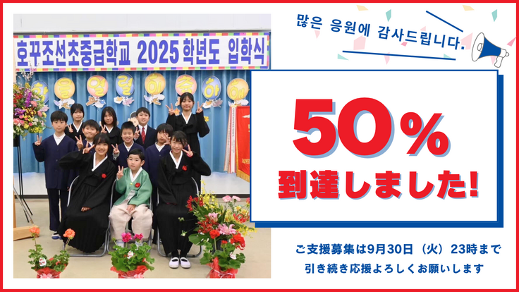 クラウドファンディングを開始してから44日目、ついに目標金額の50%に到達することができました!これもすべて、応援してくださる皆さま一人ひとりのおかげです。心より感謝申し上げます。