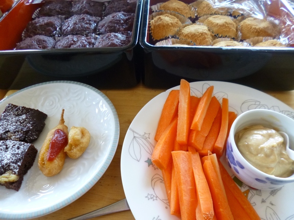 お茶会のお伴は、まんまるスタッフの作った米粉のガトーショコラ。