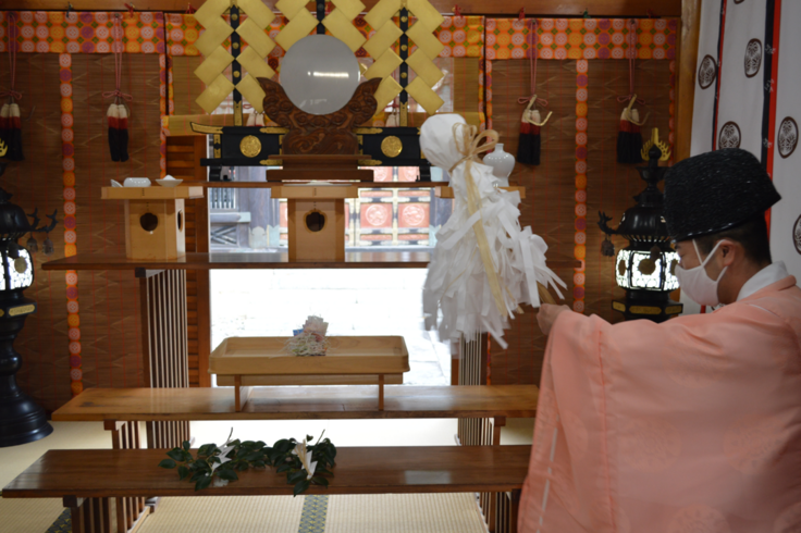 短冊には、早く病気を治したいという患者さんやご家族の切実な思いがしたためられており、その願いが成就するよう神主様から丁重にご祈祷していただきました。