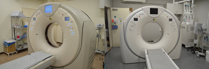 CT、MRIなどの放射線診断装置は欧米メーカー(ドイツ、オランダ、アメリカ)の世界的シェアが大きい中、当院のCTは2台とも国産製品(キヤノン製)です。