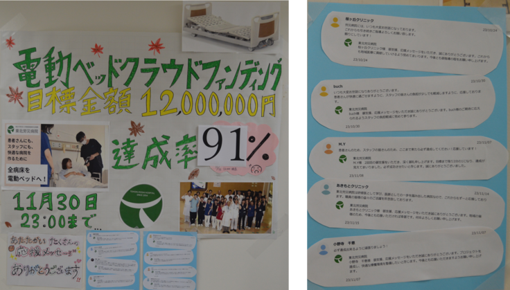 これまで多くの皆様からいただいた、身に余る程の応援のお言葉・御支援額は職員一同で共有し、全身全霊を捧げて医療を提供する私達の心の支えとしております。