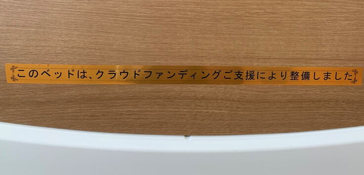 ご支援をいただいた皆様への感謝の気持ちを忘れないよう、各ベッドには『このベッドは、クラウドファンディングご支援により整備しました』と記しました。改めて皆様に御礼申し上げます。