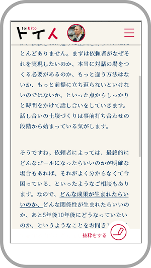 当方は現在、「学問する人のポータルサイト|トイビト」を運営しています。このサイトは、文理を問わず、さまざまな学術分野の研究をわかりやすく紹介することで、もう一度学びたいと思っている社会人、今まさに学問している大学生、これから学問の世界に入っていく高校生といったユーザーに、自分自身の問いを見つけてもらうことをめざしています。