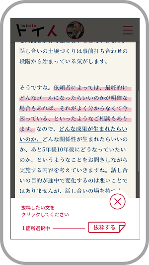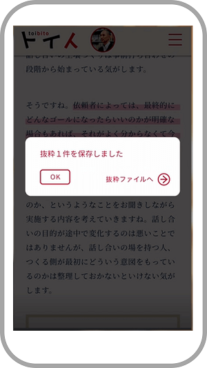 ●抜粋箇所を選択:気になる箇所を選択して「抜粋する」をクリックします。