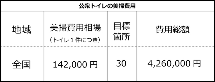 ★美掃費:公園公衆トイレ30件分の費用合計=¥4,260,000円