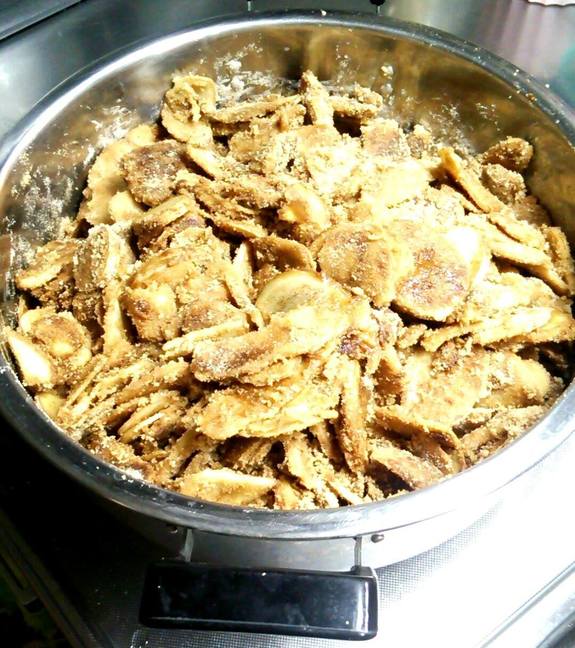 (ショウガをスライスして黒砂糖などを混ぜ、一晩寝かせます。すると・・)