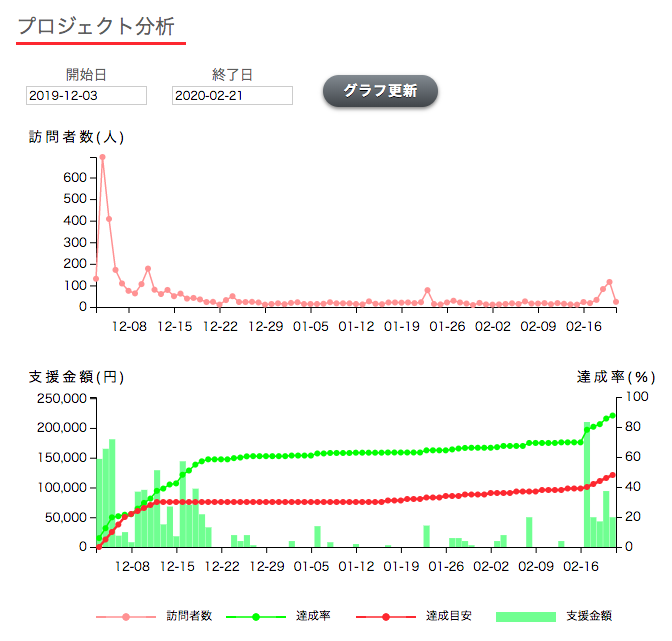下の画像はここまでのページ閲覧者数とご支援金額の推移です。