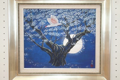 作品に朱鷺を飛ばした小品です、群青の夜空に月光が背景にある心象画