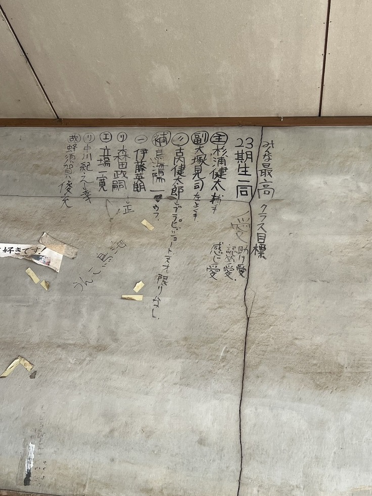 当時のみんなの思いが詰まった落書きが沢山書かれています。時が止まったかのようでした。ここで10代の若者たちが元気いっぱいに青春を謳歌していたのがよくわかりました。