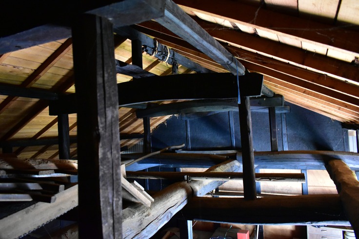 この古民家の建物は、朽ちているところもありますが、梁や柱はしっかりとしているうえ、豆腐を作っていた時に使っていた当時の道具や羽釜、蒸し器などが今も残されております。