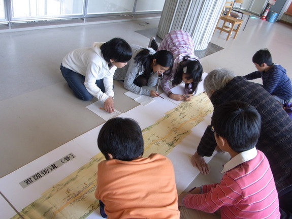 (地域の方から、校区の昔の様子を聞き取っています)