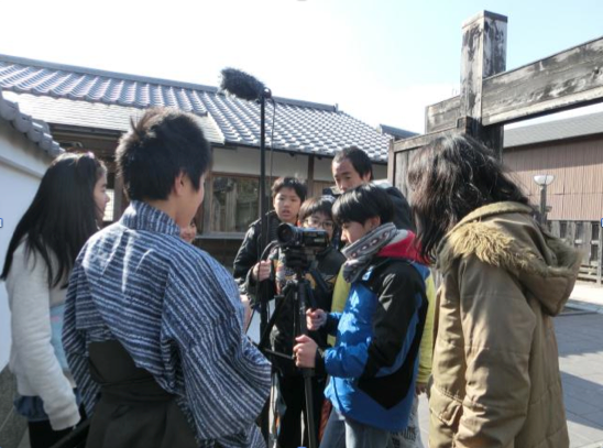 2学期は、見た人たちが心を動かされるような面白さに気づけるように「映画の面白さってなんだろう」ということを考えました。実際に映画を観ることが大切だと考え、ショートムービーの観賞会を行いました。子どもたちは、「自分たちにしか撮れないものを撮りたい」「地域のよさを出したい」「映像の撮り方を工夫したい」など、学びを深めました。子どもたちは映画にしたらおもしろそうな題材や場所を見つけたいという意欲を持って地域の方から昔の様子や文化の聞き取りを行いました。地域の歴史上の人物のことや昔の学校の様子、祭りの由来などを聞き取りました。映画監督の経験がある方とも出会い、色んな人が関わって一つの映画ができること、カメラの位置や役者の動きの大切さを学んできました。