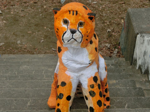 ★物語のスタートで大切になってくる「チーターの置物」。大道具チームの子どもたちが立派なチーターの置物を制作しました。映画に出てくるさまざまな小道具は子どもたちの手作りです!