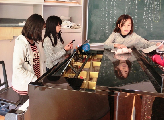★物語の中で重要なカギとなる「校歌」。音楽チームの子どもたちが校歌をアレンジし、ダンス曲へと変えました。演奏も自分たちで行い、CDを制作しました。これからはエンディングテーマの製作に入ります!