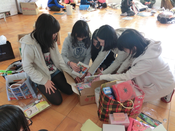 ★109シネマでの上映をめざし、バザーの開催にむけて宣伝チームが準備をしています。学校・地域の方々からたくさんの品が届きました。