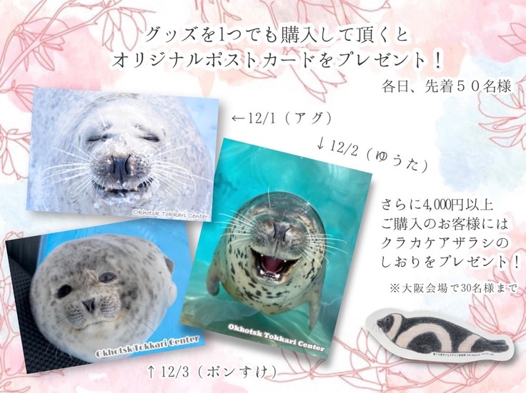 尚且つ4,000円以上お買い上げいただいた方にはクラカケアザラシのしおりを差し上げます!😊
