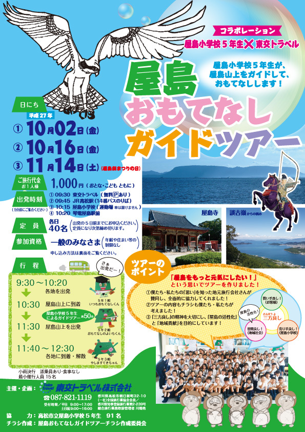 屋島小学校のみんなの誇りである「屋島」を自分たちの力で活性化したい!そう願う5年生たちの思いに心を打たれ、3年間共に取り組んだ「屋島おもてなしガイドツアー」。