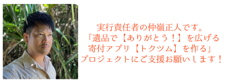 遺品で【ありがとう!】を広げる寄付アプリ【トクツム】を作る!