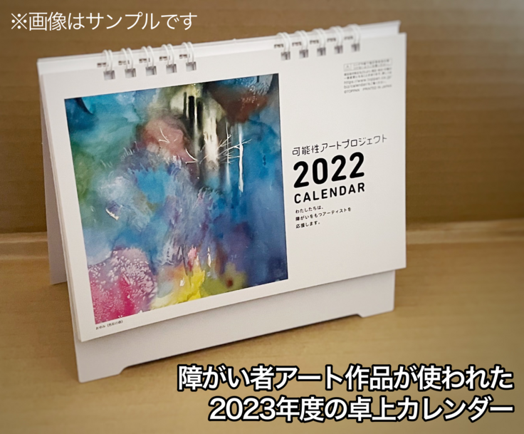寄付アプリ【トクツム】の寄付先としてご協力していただいている「一般社団法人障がい者アート協会」様より、障がい者アート作品が使われた2023年度の卓上カレンダーをお送りします。